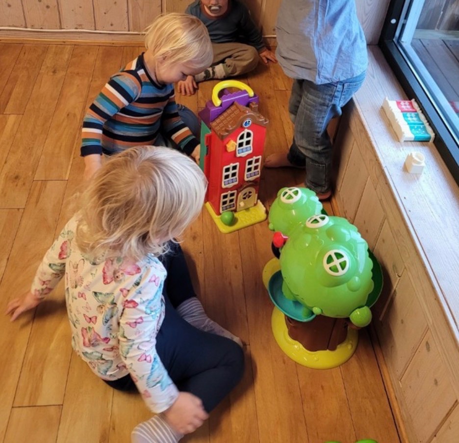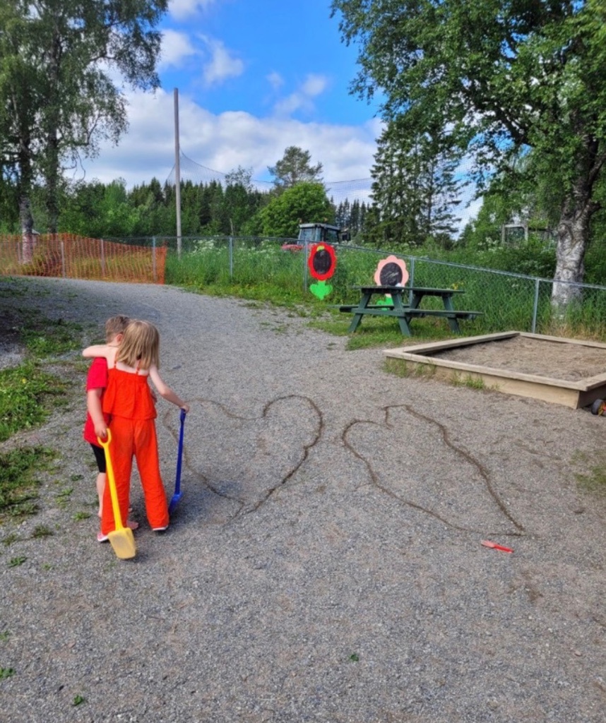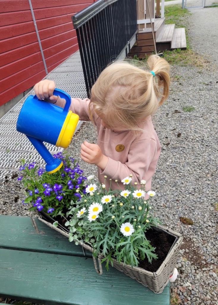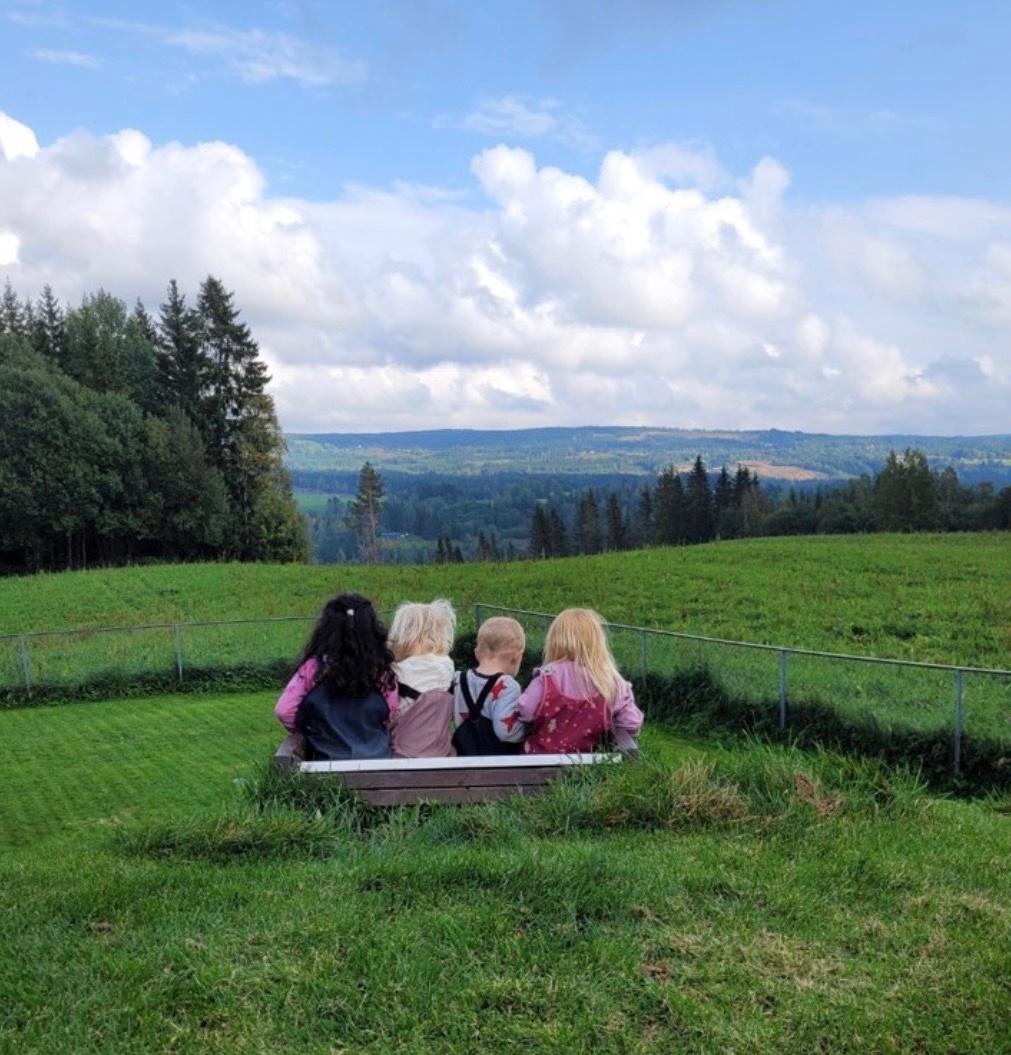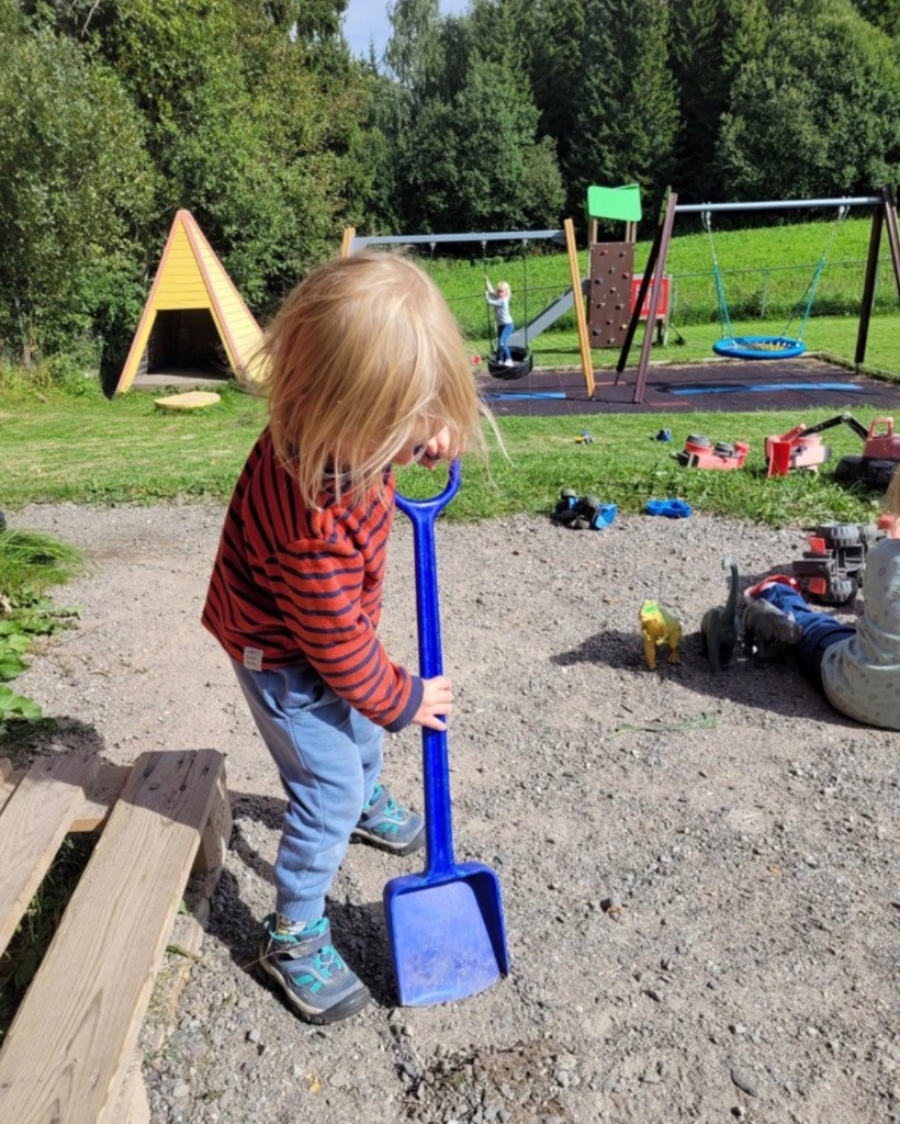 Hos oss står lek, vennskap og gode opplevelser i sentrum. Vi legger til rette for en trygg og forutsigbar hverdag med gode rutiner, samtidig som vi skaper rom for lek, utforsking og spontane øyeblikk. Gjennom lek utvikler barna språk, fantasi, sosial kompetanse og evne til samarbeid, og vi voksne er tilstedeværende og støttende i barnas lek og samspill.